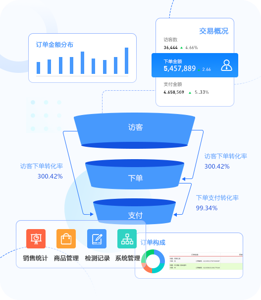 多樣化的銷售方式,生成后臺(tái)交易環(huán)節(jié)的關(guān)鍵數(shù)據(jù),助你快讀指定最佳售賣策略,提高客單價(jià)喝應(yīng)收,拓展更多變現(xiàn)可能性。